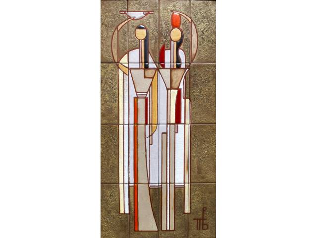 Panos Valsamakis Azulejo 63 x 31,5 "Figuras " ass CID anos 60 - Grécia
