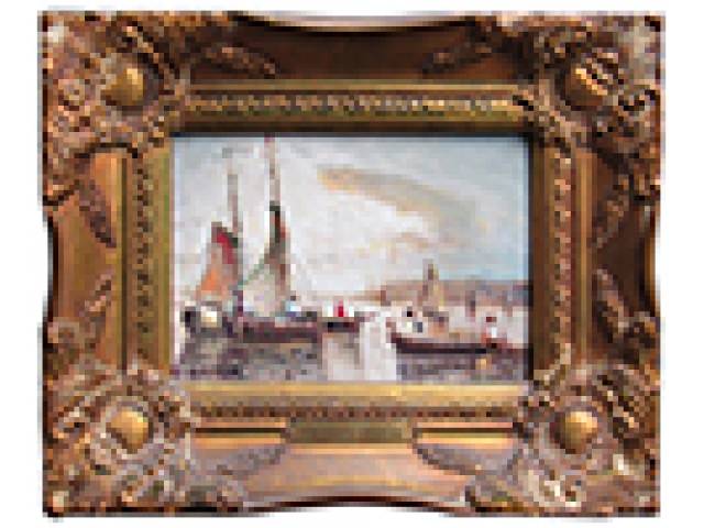 Ângelo Cannone óleo sobre madeira 24 x 34 cm "Marinha e Personagens" ass. CID