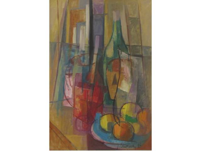 José Moraes óleo sobre tela 60 x 40 cm intitulado "Composição com frutas" ass. CID e verso 1986