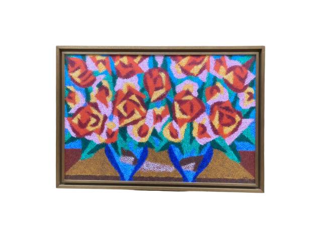 CLAUDIO TOZZI, ÓLEO SOBRE TELA COLADO SOBRE MADEIRA 80 X 1.20 CM "FLORES" ASS. CID E VERSO
